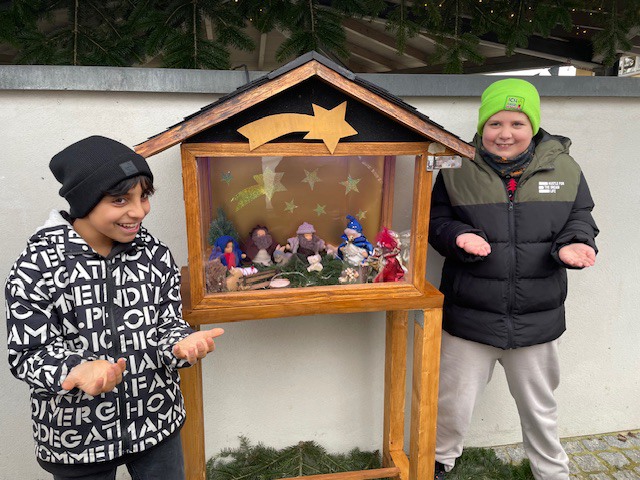 In der Adventszeit machten sich zwei Klassen auf den Weg, um den wunderschönen Krippenweg in Immendingen zu entdecken. Mit großer Begeisterung betrachteten die Kinder die liebevoll gestalteten Krippen und Figuren. Auch Schulhund Benni war mit von der Partie und genoss den Spaziergang sichtlich. Es gab viel zu staunen und zu entdecken – ein schöner Ausflug, der alle in festliche Stimmung versetzte!
